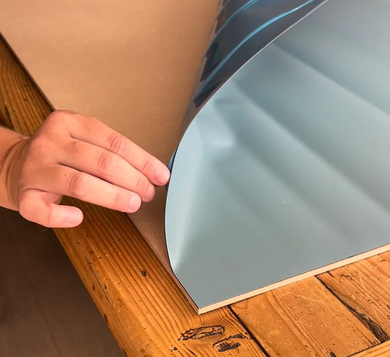 • As you peel, slowly press the decal onto the MDF board, avoiding air bubbles. You can use a flat tool or a cloth. The more you press more it sticks.