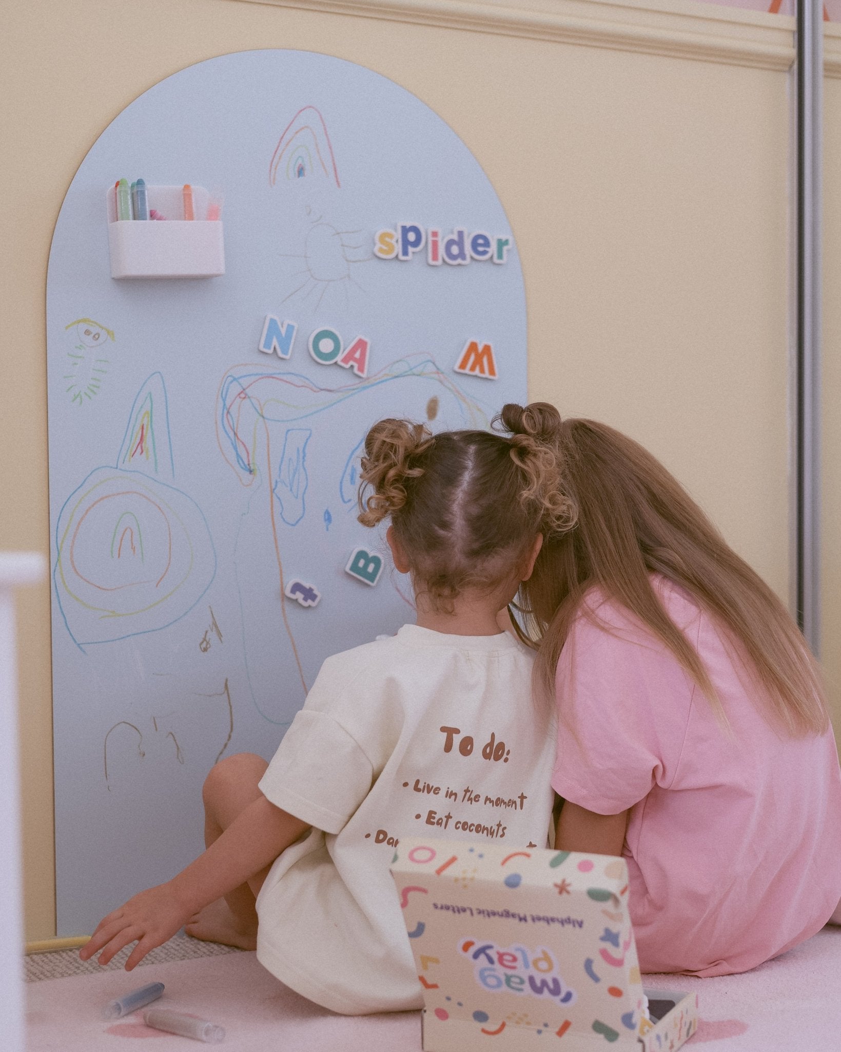 Whether it's showcasing vibrant artwork, playing, or creating interactive learning spaces, MagPlay's magnetic feature adds a dynamic and versatile dimension to your walls. The magic doesn't stop there – it also seamlessly integrates with a variety of magnetic toys and accessories, offering a world of exploration and play for your little ones.